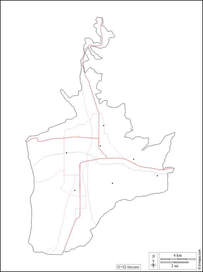 d-maps > एशिया > ताजिकिस्तान > दुशान्बे > बाह्यरेखा, मुख्य शहरों, सड़कों, सफेद