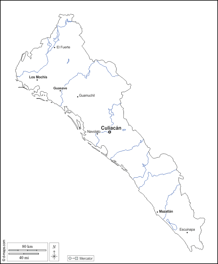 d-maps > महाअमेरिका > मेक्सिको > सिनालोआ > बाह्यरेखा, जल-सर्वेक्षण, मुख्य शहरों, नाम, सफेद