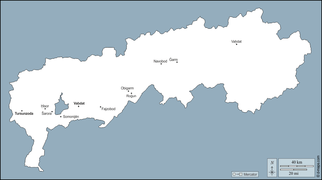 d-maps > एशिया > ताजिकिस्तान > गणतंत्र-अधीन ज़िले > बाह्यरेखा, मुख्य शहरों, नाम