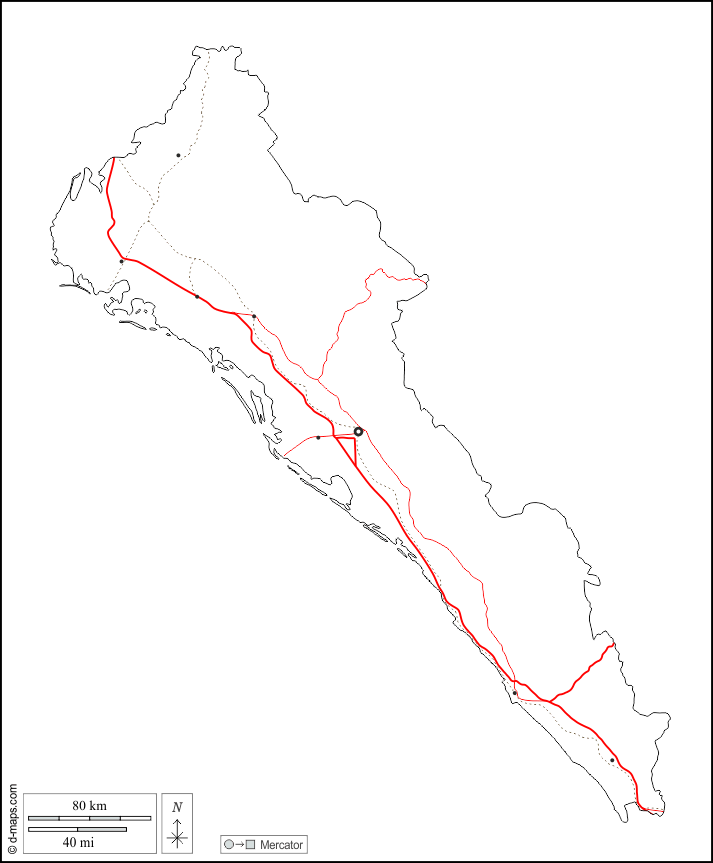d-maps > महाअमेरिका > मेक्सिको > सिनालोआ > बाह्यरेखा, मुख्य शहरों, सड़कों, सफेद
