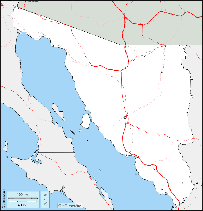 d-maps > महाअमेरिका > मेक्सिको > सोनोरा > सीमाओं, मुख्य शहरों, सड़कों