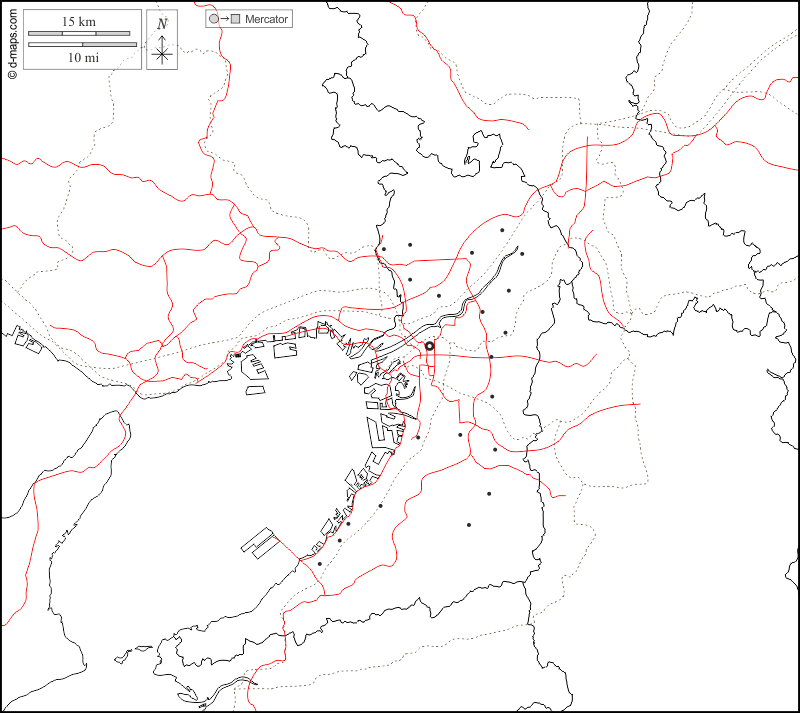 d-maps > एशिया > जापान > ओसाका > सीमाओं, मुख्य शहरों, सड़कों, सफेद