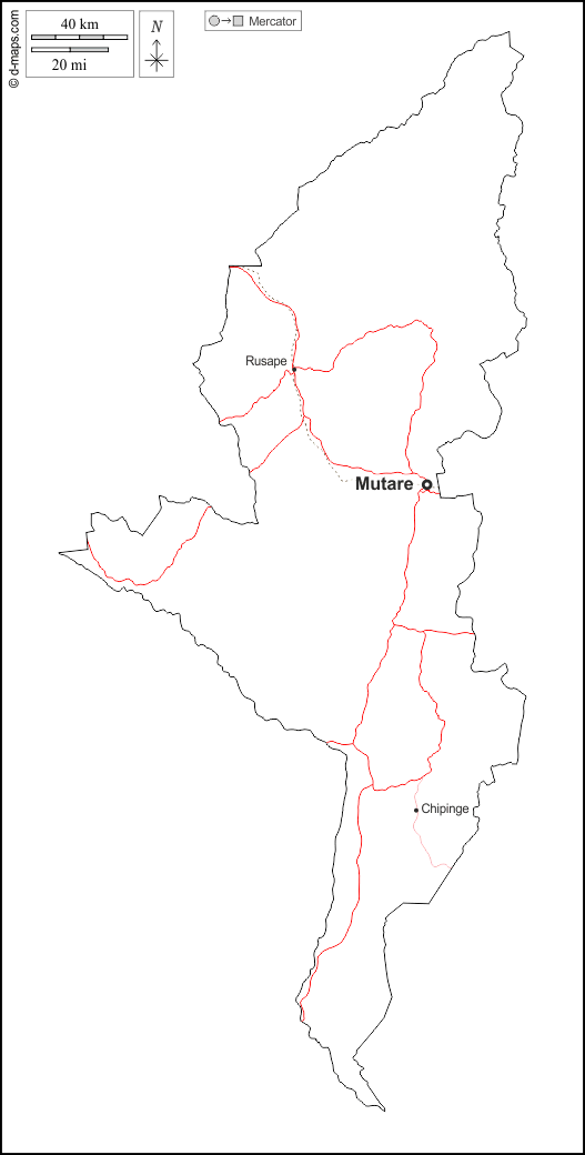 d-maps > अफ्रीका > ज़िम्बाब्वे > मैनिकालैंड > बाह्यरेखा, मुख्य शहरों, सड़कों, नाम, सफेद