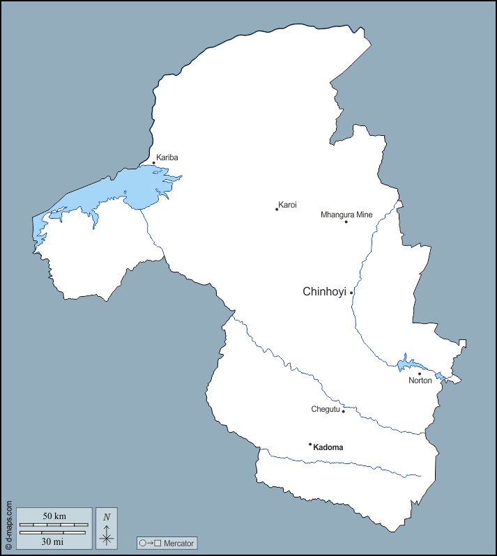 d-maps > अफ्रीका > ज़िम्बाब्वे > मशोनलैंड पश्चिम > बाह्यरेखा, जल-सर्वेक्षण, मुख्य शहरों, नाम