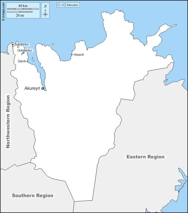 d-maps > यूरोप > आइसलैंड > पूर्वोत्तर क्षेत्र > सीमाओं, मुख्य शहरों, नाम