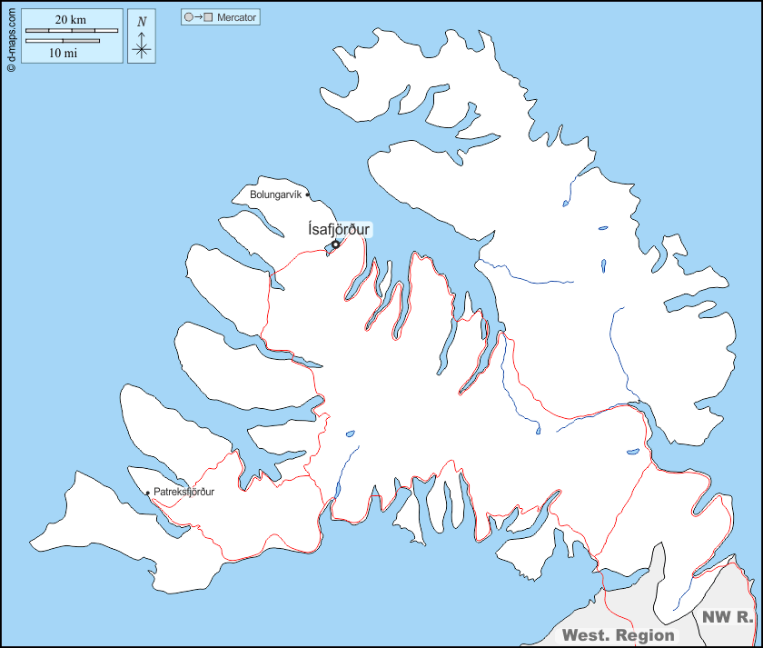 d-maps > यूरोप > आइसलैंड > पता लगाया जाएगा चर्चा > सीमाओं, जल-सर्वेक्षण, मुख्य शहरों, सड़कों, नाम
