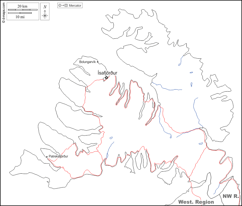 d-maps > यूरोप > आइसलैंड > पता लगाया जाएगा चर्चा > सीमाओं, जल-सर्वेक्षण, मुख्य शहरों, सड़कों, नाम, सफेद