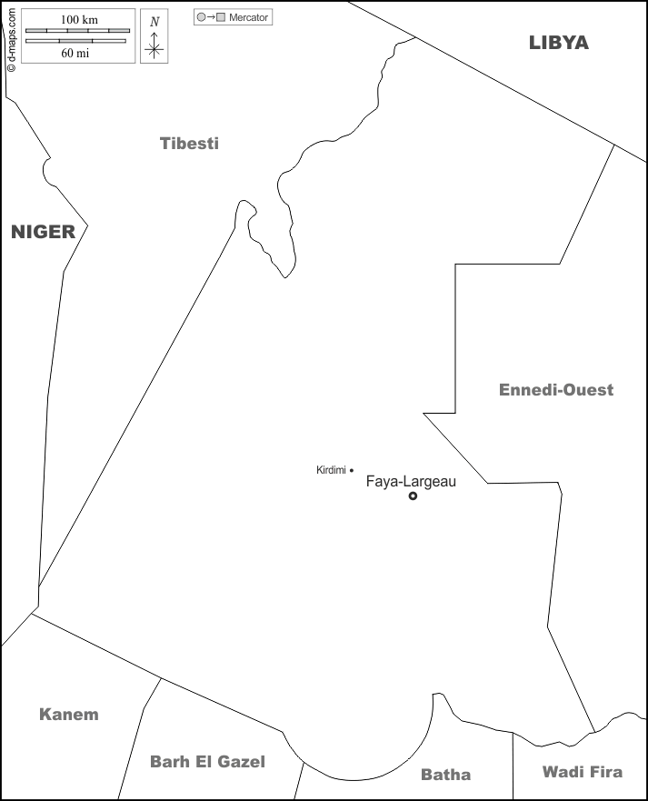 d-maps > अफ्रीका > चाड > बोर्कौ > सीमाओं, मुख्य शहरों, नाम, सफेद