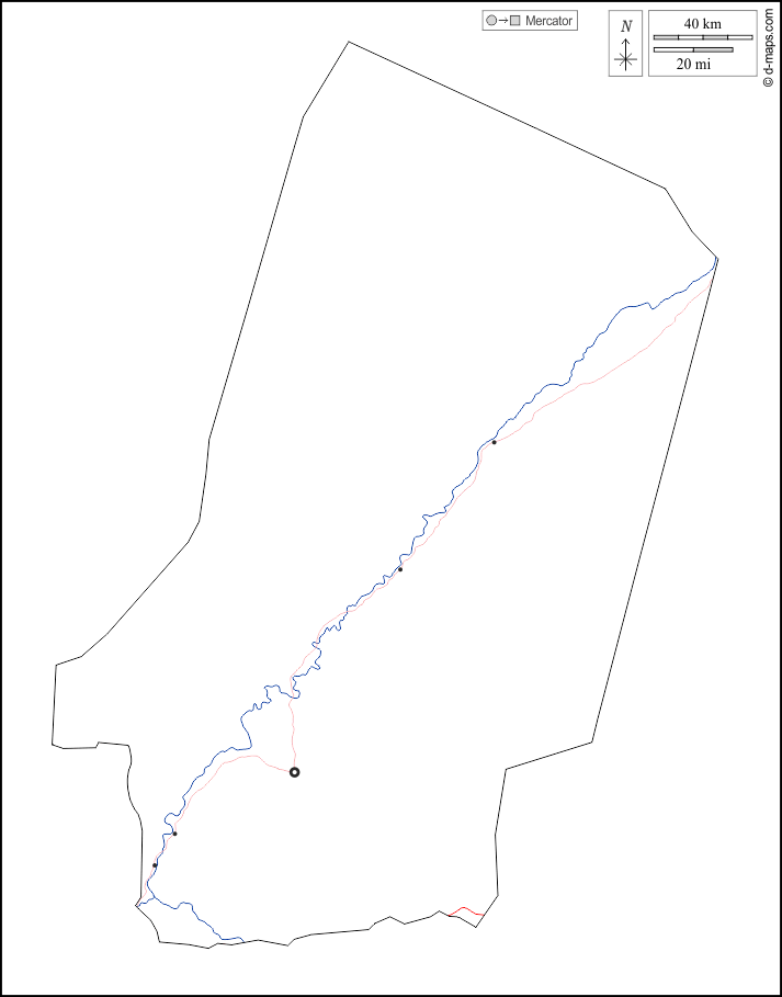 d-maps > अफ्रीका > चाड > बह्र एल गज़ेल > बाह्यरेखा, जल-सर्वेक्षण, मुख्य शहरों, सड़कों, सफेद