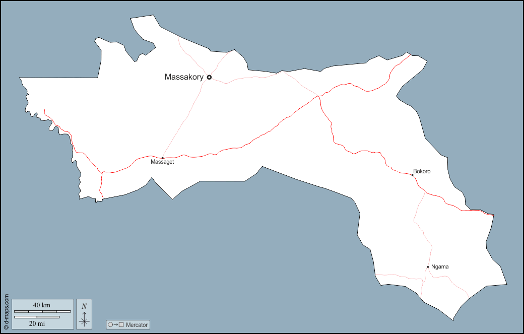 d-maps > अफ्रीका > चाड > हैजर-लैमिस > बाह्यरेखा, मुख्य शहरों, सड़कों, नाम