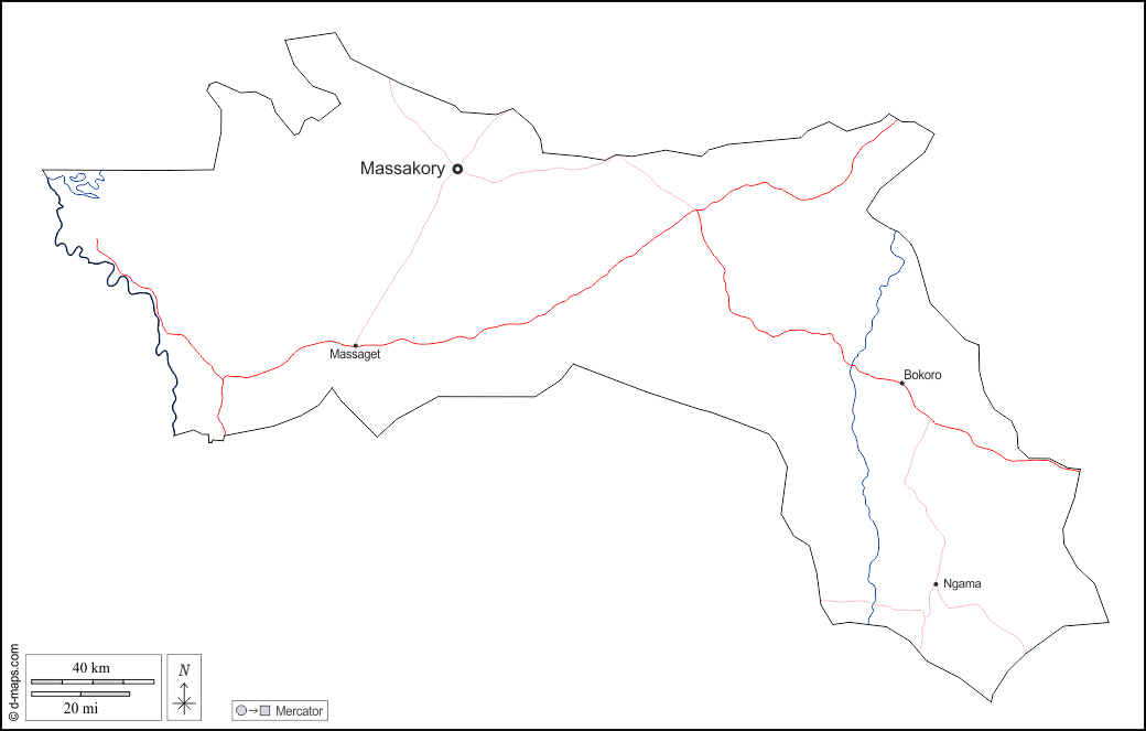 d-maps > अफ्रीका > चाड > हैजर-लैमिस > बाह्यरेखा, जल-सर्वेक्षण, मुख्य शहरों, सड़कों, नाम, सफेद