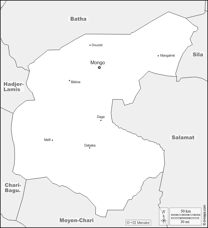 d-maps > अफ्रीका > चाड > गुएरा > सीमाओं, मुख्य शहरों, नाम