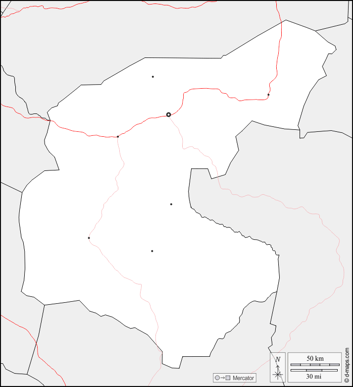 d-maps > अफ्रीका > चाड > गुएरा > सीमाओं, मुख्य शहरों, सड़कों