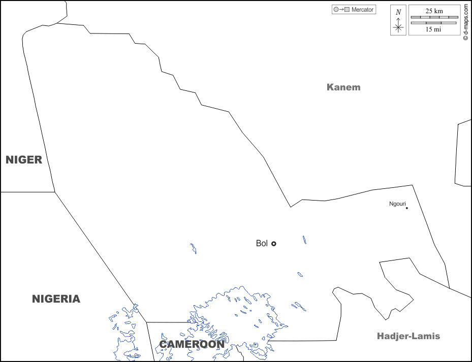 d-maps > अफ्रीका > चाड > एलएसी > सीमाओं, जल-सर्वेक्षण, मुख्य शहरों, नाम, सफेद