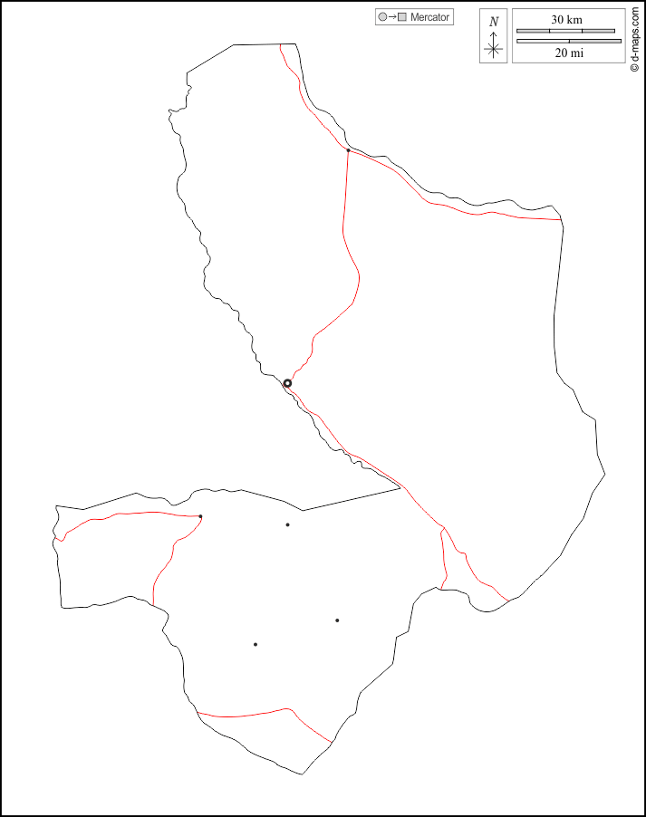 d-maps > अफ्रीका > चाड > मेयो-केबी पूर्व > बाह्यरेखा, मुख्य शहरों, सड़कों, सफेद