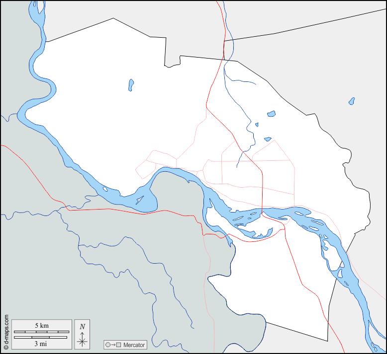 d-maps > अफ्रीका > चाड > न'दजामेना > सीमाओं, जल-सर्वेक्षण, सड़कों