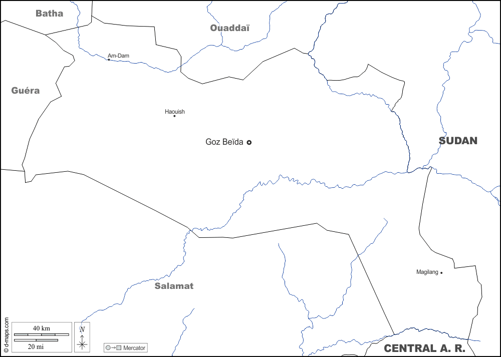 d-maps > अफ्रीका > चाड > यदि > सीमाओं, जल-सर्वेक्षण, मुख्य शहरों, नाम, सफेद