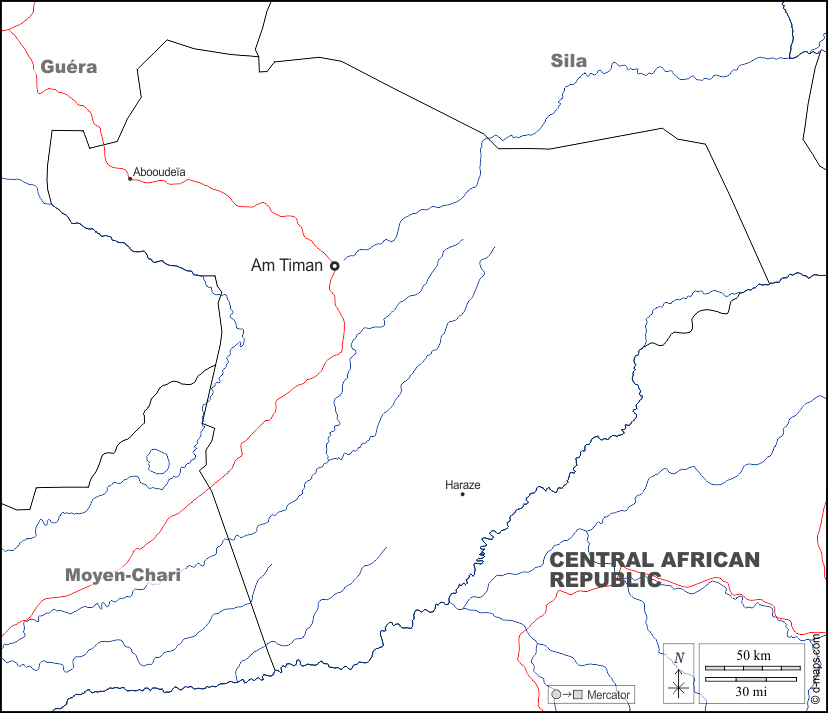 d-maps > अफ्रीका > चाड > सलामत > सीमाओं, जल-सर्वेक्षण, मुख्य शहरों, सड़कों, नाम, सफेद