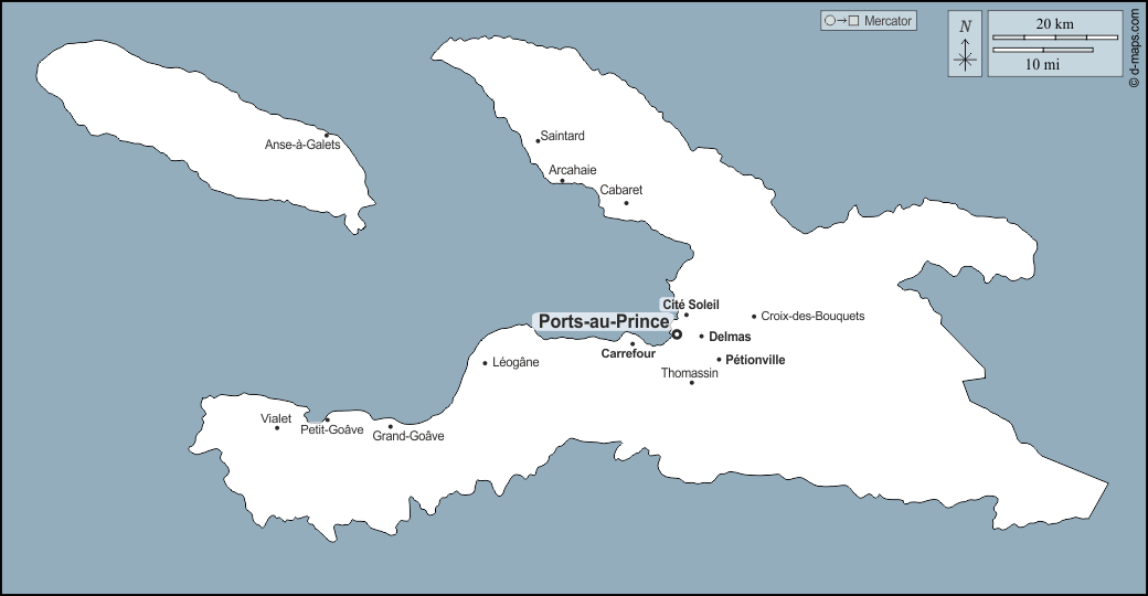 d-maps > महाअमेरिका > हैती > पश्चिम > बाह्यरेखा, मुख्य शहरों, नाम