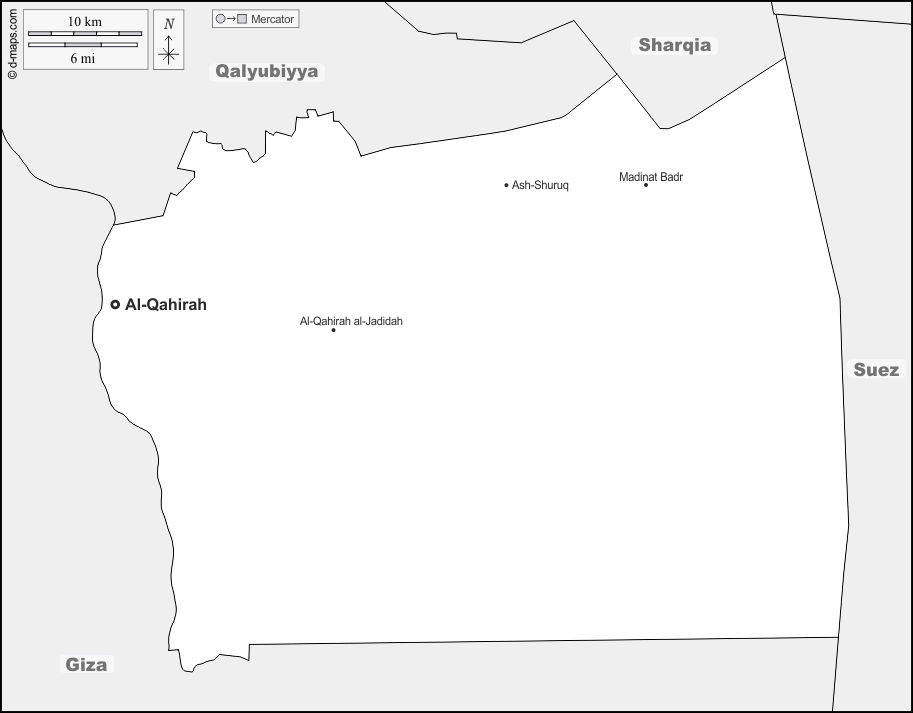 d-maps > अफ्रीका > मिस्र > काहिरा गवर्नरेट > सीमाओं, मुख्य शहरों, नाम