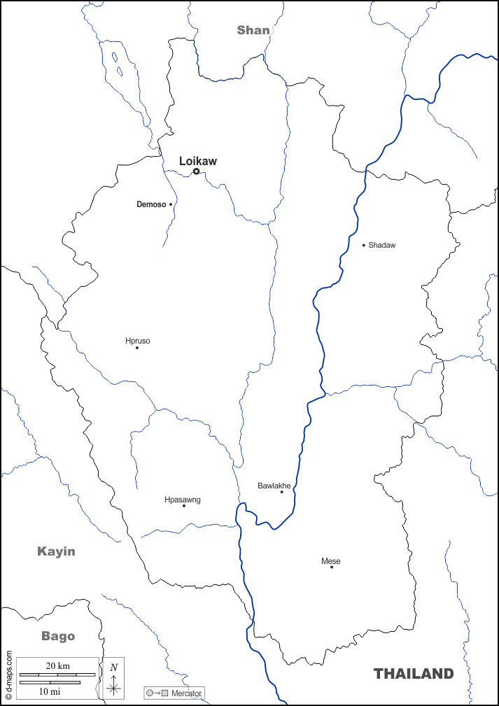 d-maps > एशिया > बर्मा म्यांमार > कयाह राज्य > सीमाओं, जल-सर्वेक्षण, मुख्य शहरों, नाम, सफेद