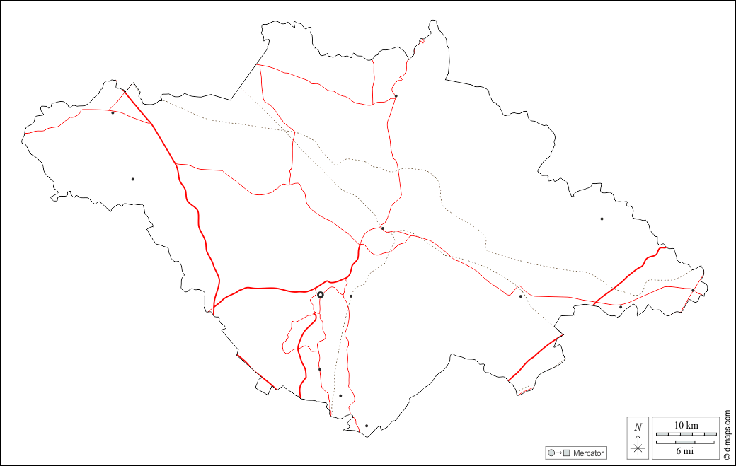 d-maps > महाअमेरिका > मेक्सिको > तल्क्स्काला > बाह्यरेखा, मुख्य शहरों, सड़कों, सफेद
