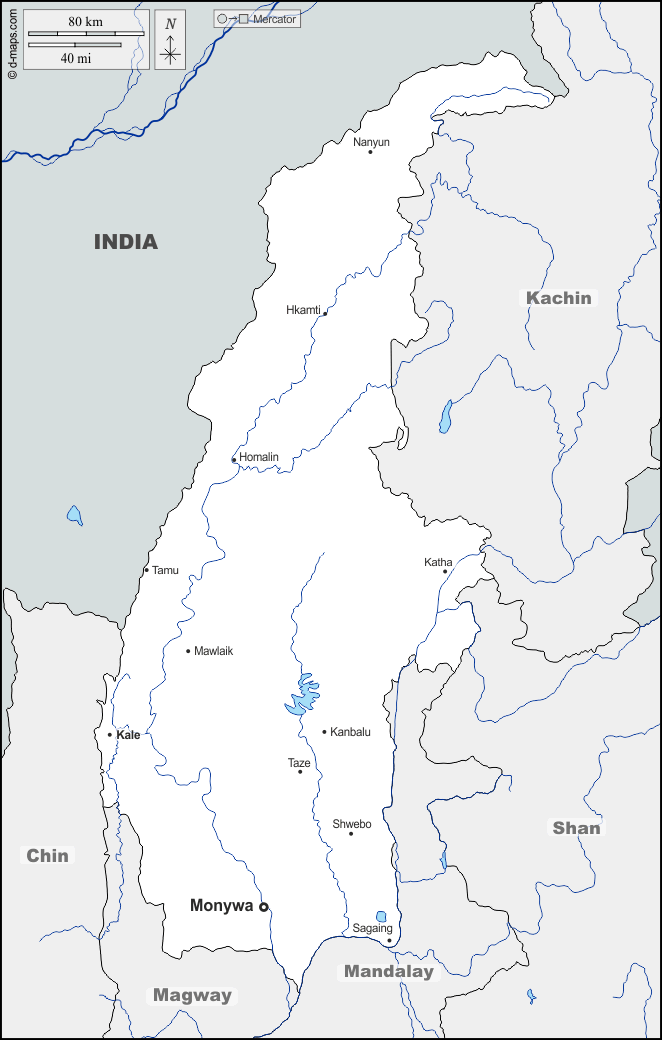 d-maps > एशिया > बर्मा म्यांमार > सगाइंग मण्डल > सीमाओं, जल-सर्वेक्षण, मुख्य शहरों, नाम