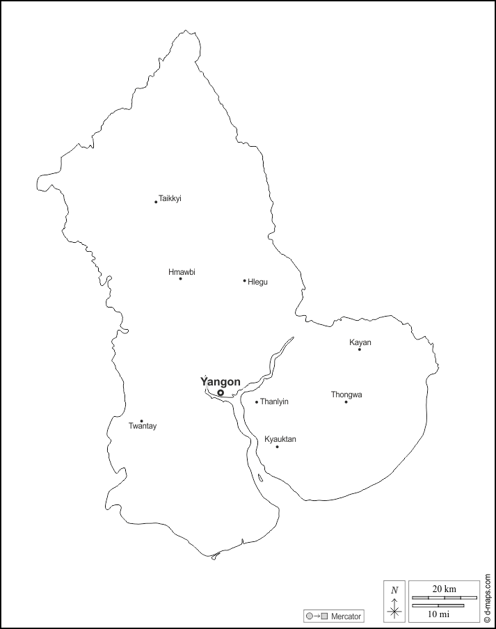 d-maps > एशिया > बर्मा म्यांमार > यांगोन मण्डल > बाह्यरेखा, मुख्य शहरों, नाम, सफेद