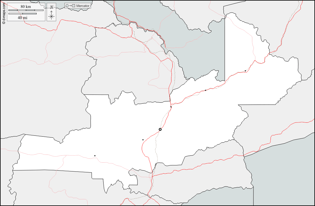 d-maps > अफ्रीका > ज़ांबिया > केंद्रीय > सीमाओं, मुख्य शहरों, सड़कों