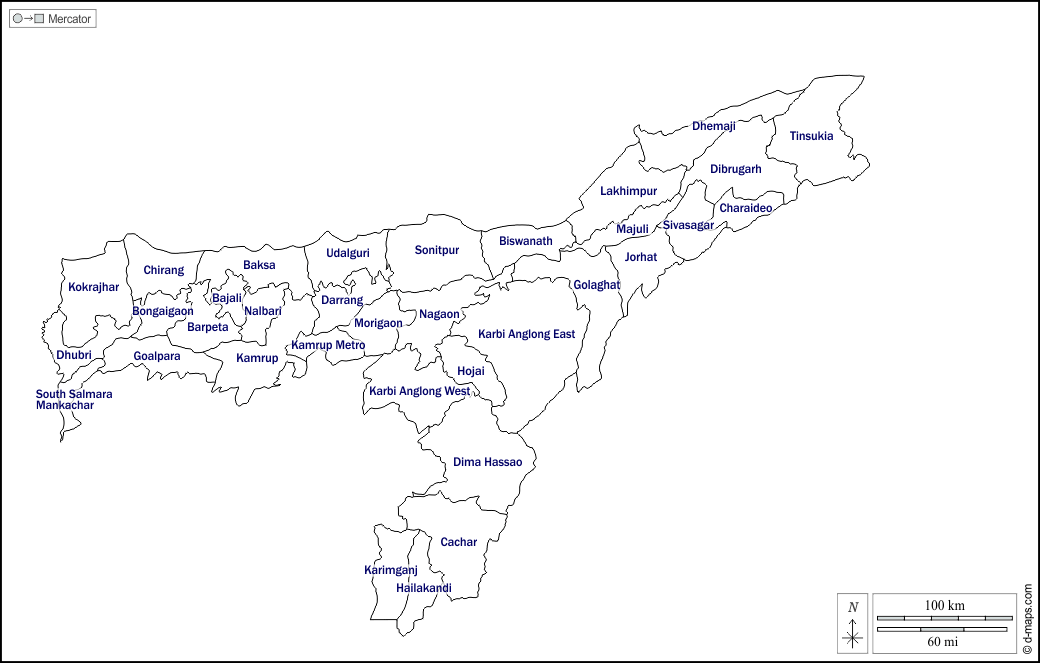 d-maps > एशिया > भारत > असम > बाह्यरेखा, जिलों, नाम, सफेद