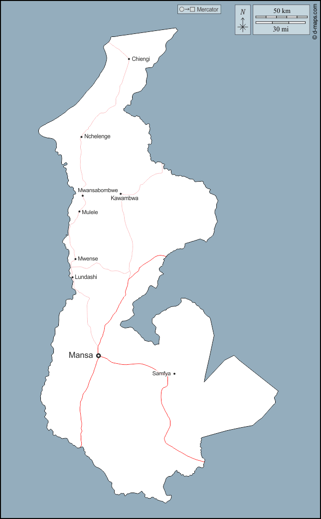 d-maps > अफ्रीका > ज़ांबिया > ल्वपुला > बाह्यरेखा, मुख्य शहरों, सड़कों, नाम