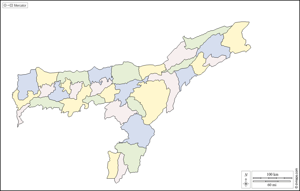 d-maps > एशिया > भारत > असम > बाह्यरेखा, जिलों, रंग, सफेद