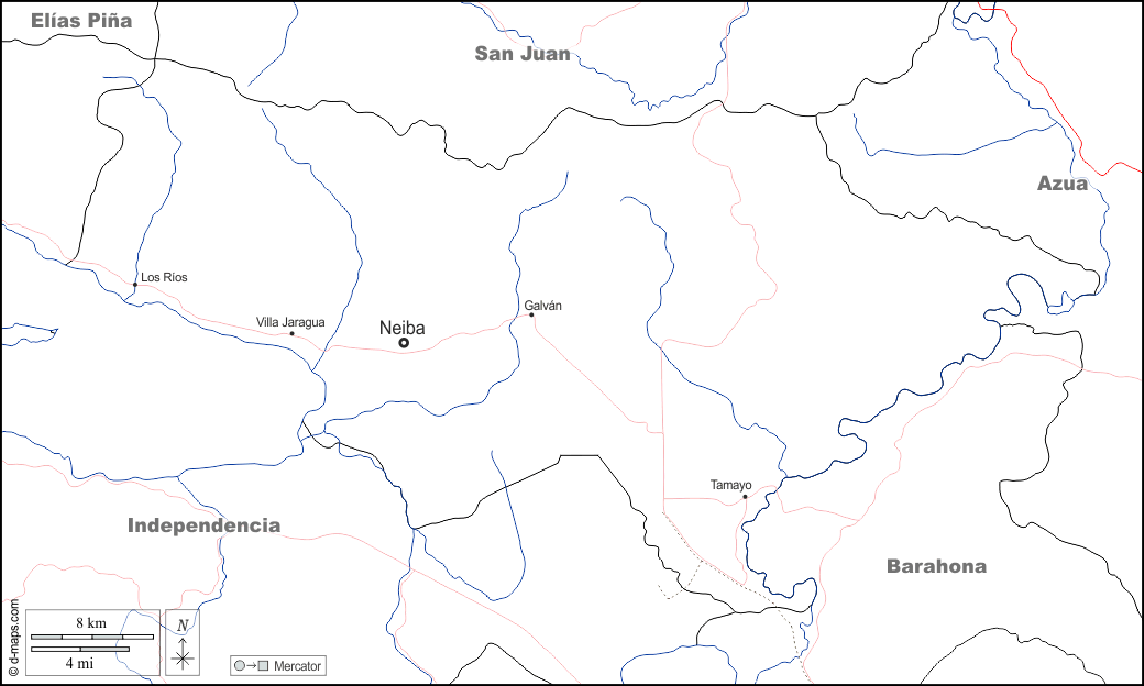 d-maps > महाअमेरिका > डोमिनिकन गणराज्य का ध्वज > बौरूको > सीमाओं, जल-सर्वेक्षण, मुख्य शहरों, सड़कों, नाम, सफेद