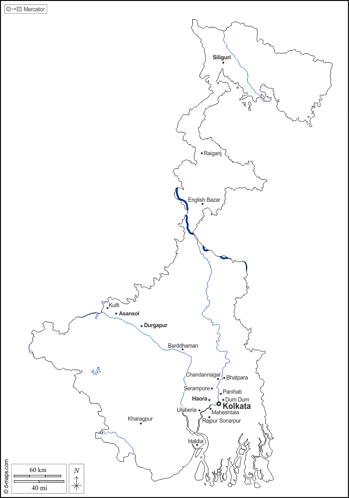 d-maps > एशिया > भारत > पश्चिम बंगाल > बाह्यरेखा, जल-सर्वेक्षण, मुख्य शहरों, नाम, सफेद