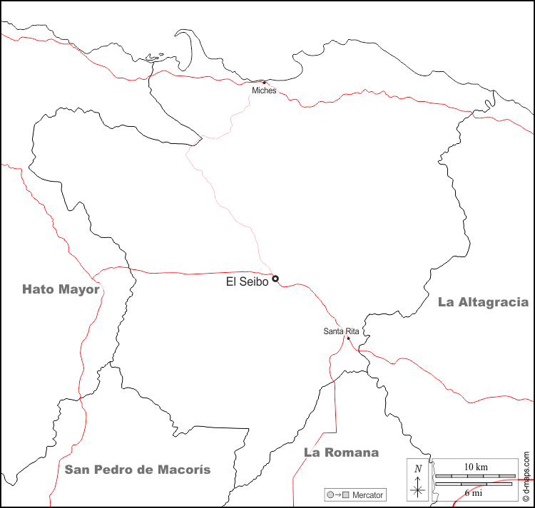 d-maps > महाअमेरिका > डोमिनिकन गणराज्य का ध्वज > एल सेइबो > सीमाओं, मुख्य शहरों, सड़कों, नाम, सफेद
