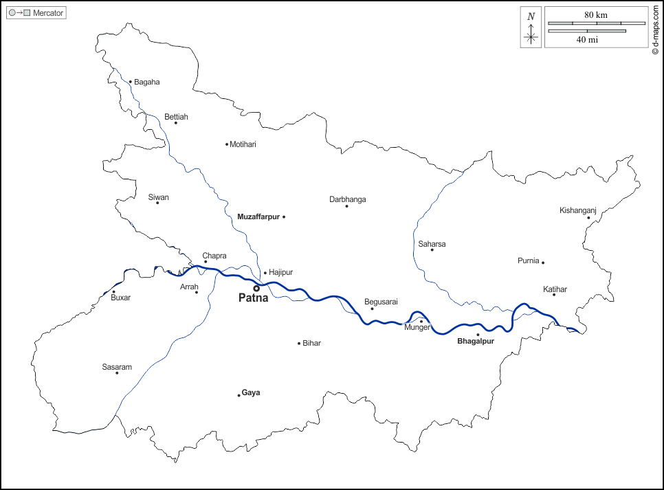 d-maps > एशिया > भारत > बिहार > बाह्यरेखा, जल-सर्वेक्षण, मुख्य शहरों, नाम, सफेद