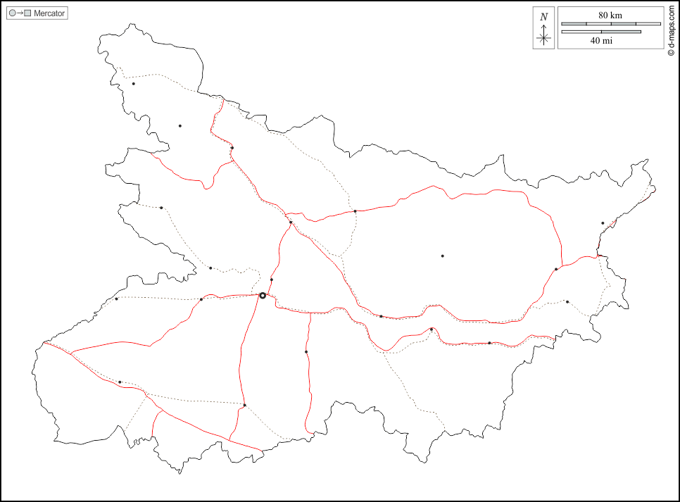 d-maps > एशिया > भारत > बिहार > बाह्यरेखा, मुख्य शहरों, सड़कों, सफेद