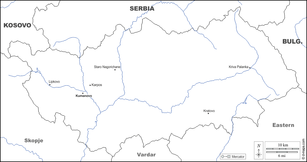 d-maps > यूरोप > उत्तर मैसिडोनिया > पूर्वोत्तर > सीमाओं, जल-सर्वेक्षण, मुख्य शहरों, नाम, सफेद