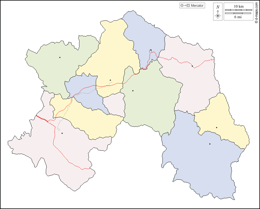 d-maps > यूरोप > उत्तर मैसिडोनिया > पूर्वी > बाह्यरेखा, नगर पालिकाओं, मुख्य शहरों, सड़कों, रंग, सफेद