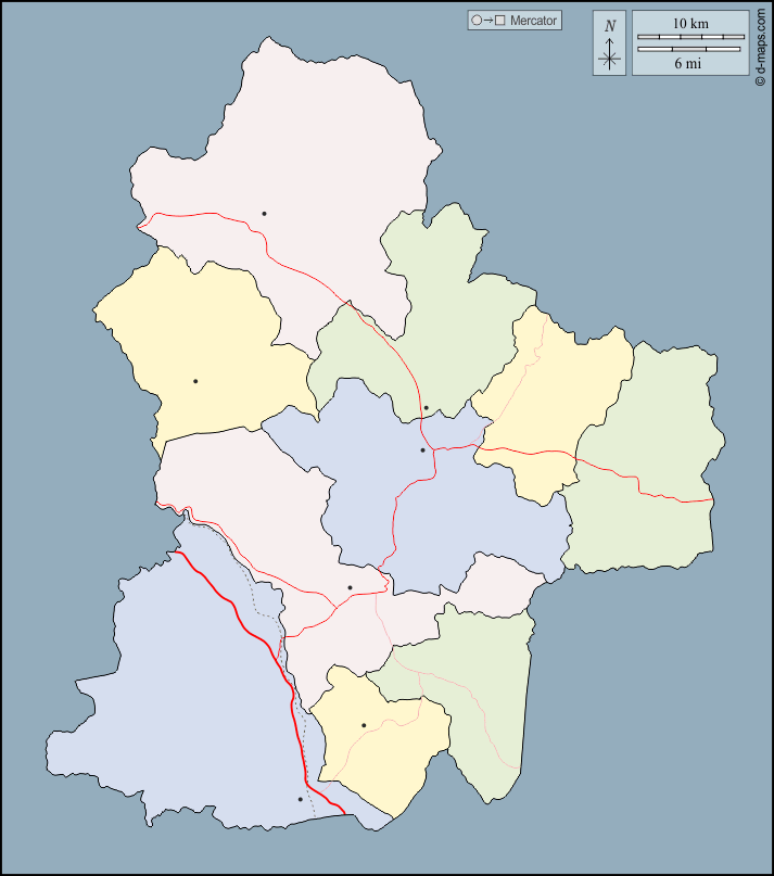 d-maps > यूरोप > उत्तर मैसिडोनिया > दक्षिण > बाह्यरेखा, अमीरात, मुख्य शहरों, सड़कों, रंग