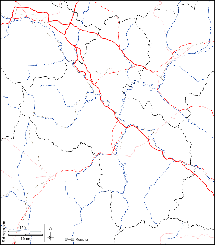 d-maps > यूरोप > उत्तर मैसिडोनिया > वरदार > सीमाओं, जल-सर्वेक्षण, सड़कों, सफेद