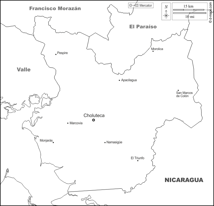 d-maps > महाअमेरिका > होंडुरास > चोलुतेका > सीमाओं, मुख्य शहरों, नाम, सफेद