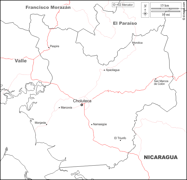 d-maps > महाअमेरिका > होंडुरास > चोलुतेका > सीमाओं, मुख्य शहरों, सड़कों, नाम, सफेद