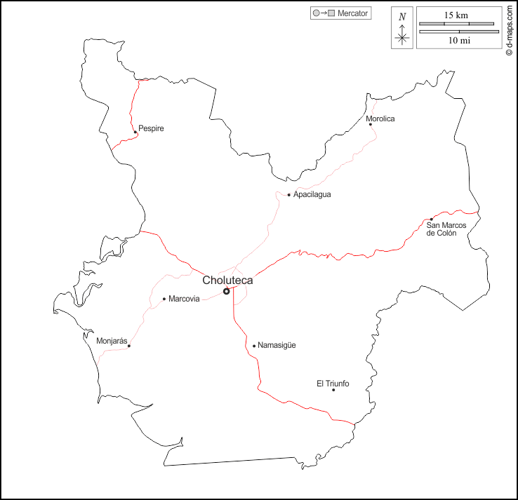 d-maps > महाअमेरिका > होंडुरास > चोलुतेका > बाह्यरेखा, मुख्य शहरों, सड़कों, नाम, सफेद
