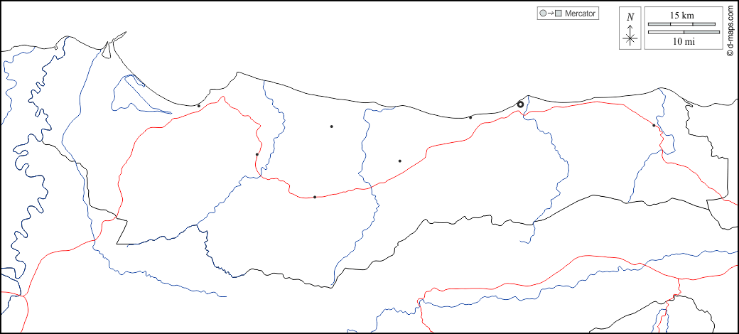 d-maps > महाअमेरिका > होंडुरास > एटलांटिडा > सीमाओं, जल-सर्वेक्षण, मुख्य शहरों, सड़कों, सफेद