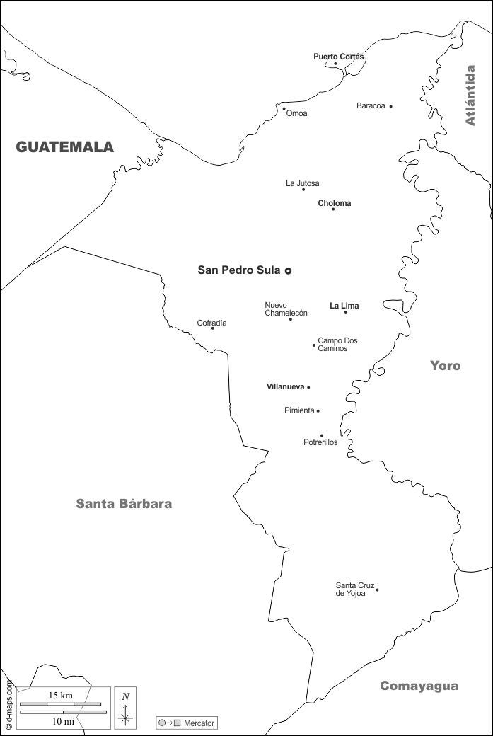 d-maps > महाअमेरिका > होंडुरास > कोर्टेस > सीमाओं, मुख्य शहरों, नाम, सफेद