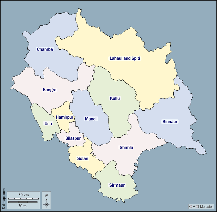 d-maps > एशिया > भारत > हिमाचल प्रदेश > बाह्यरेखा, जिलों, नाम, रंग