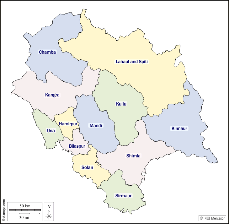d-maps > एशिया > भारत > हिमाचल प्रदेश > बाह्यरेखा, जिलों, नाम, रंग, सफेद