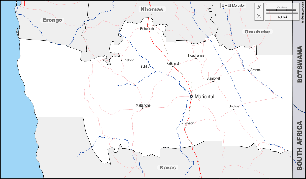 d-maps > अफ्रीका > नामीबिया > हरडाप > सीमाओं, जल-सर्वेक्षण, मुख्य शहरों, सड़कों, नाम