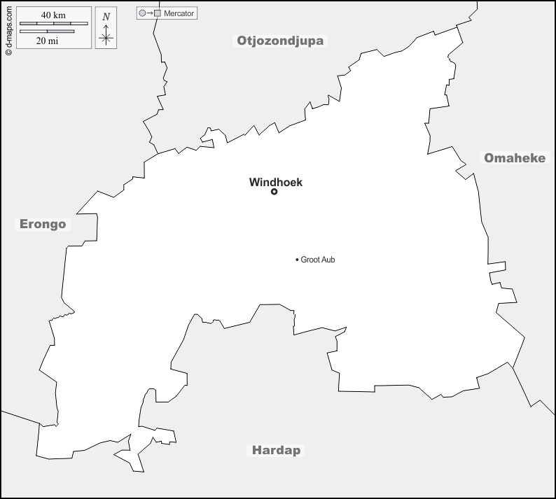 d-maps > अफ्रीका > नामीबिया > खोमास > सीमाओं, मुख्य शहरों, नाम